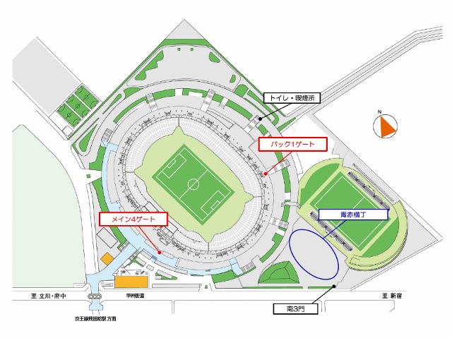 スタジアム入場後は青赤横丁へは「メイン4ゲート」ならびに「バック1ゲート」をご利用ください。