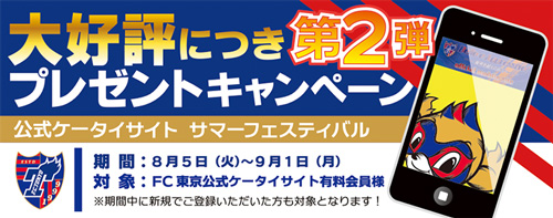 大好評につき公式ケータイサイトでは、「サマーフェスティバル」第2弾を開催!!第1弾同様、ここでしか手に入らない豪華プレゼントが当たります!たくさんのご応募お待ちしております!