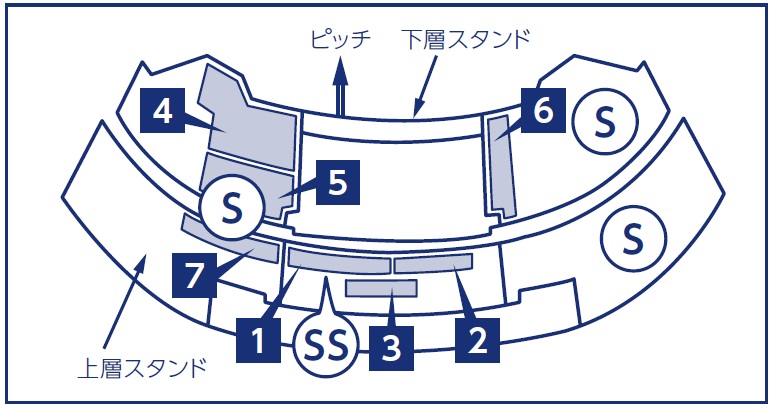 (3)メインSS・メインS指定席の位置は年間指定席エリア内1~7となりますので、予めご了承ください。